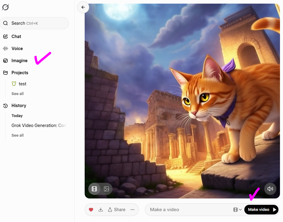 ↑Imaginを選択すると、自動的に「Make video」が開始され。