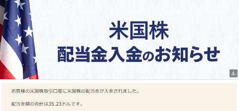 米国株 配当金入金のお知らせが届き。