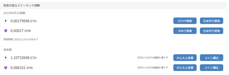 以上「【25年10月】Zaif取引所のETHステーキング報酬」でした。